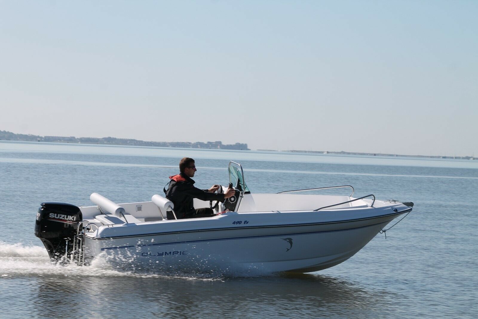 Olympic 490 Fx. A boat for demanding users with unsinkable design, self-bailing cockpit and 5-year hull warranty. The new model is offered in many layouts and plenty equipment options. Designed as an economical alternative without compromises in quality, the 490 Fx boasts modern design. Additionally, its hull offers comfortable rides even with small-power outboard engines (from 30hp).